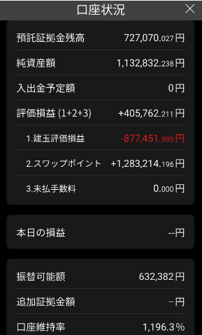 | 証拠金維持率 | 1196.3% |